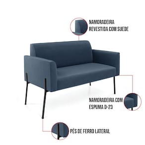 "Todo mundo gosta de um ambiente bem decorado, e se for novidade melhor ainda não é mesmo? A D'Rossi, além de entregar beleza, qualidade e confiança aos clientes, ela dispõe das melhores opções em produtos, disponíveis no mercado! Portanto, se você quer um produto sofisticado, opte pelo Sofá Namoradeira e Poltrona. Ele possui um design lindo e sofisticado, com pés de Ferro Lateral Preto e revestimento em tecido Suede Azul Marinho, que harmonizam com qualquer ambiente. Esta mobília fica perfeita na sala de estar, recepções, mesa de jantar ou qualquer outro espaço que você queira decorar com estilo e bom gosto. Ela contém uma estrutura em madeira de reflorestamento eucalipto, que garante a resistência e a sustentabilidade do produto. Ela suporta até 120 kg de peso, podendo ser utilizada por pessoas de diferentes biotipos. Ela tem um acabamento reforçado e espuma de qualidade D-23, garantindo flexibilidade e conforto ao usuário. O Sofá Namoradeira e Poltrona Marisa é um produto de alta qualidade, beleza e funcionalidade. Ele é fácil de transportar, pois tem um peso leve e um tamanho compacto. O Sofá Namoradeira e Poltrona Marisa é ideal, para dar aquele realce que seu ambiente precisa. Tenho certeza que esse móvel é a melhor compra que você irá fazer. Garanta já seu Sofá Namoradeira e Poltrona Marisa e se acomode da melhor maneira possível!"