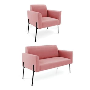 Sofá Namoradeira E Poltrona Pé De Ferro Preto Marisa Suede D03 - D'rossi Cor Rose