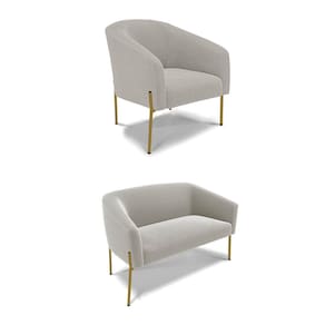 Sofá Namoradeira e Poltrona Pé Ferro Dourado Stella Bouclê Cinza D03 - D`Rossi