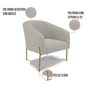 Tem novidades chegando por aqui! Olha só essa nossa inédita Namoradeira e Poltrona Stella Bouclê. Sim, as melhores opções em Namoradeira estão aqui! A Namoradeira e Poltrona Stella Bouclê é para todas as ocasiões, é ideal para você relaxar, assistir tv ou ler um livro, mantendo-o confortável ao longo do dia! Um estofado versátil, que foge do convencional pelo seu design e tecido luxuoso. Seu formato curvo, marcante e sofisticado, oferece conforto de forma excepcional, com aquela sensação de abraço, que deixa o coração quentinho! Desenvolvida com atenção aos detalhes, para atender todas suas expectativas e necessidades. Seu aspecto arredondado e anatômico, possibilita que a postura fique sempre alinhada, mantendo a coluna na posição correta. Ela dispõe de um acabamento impecável, revestida em Bouclê em tom Cinza, um tecido maleável que além de ser muito bonito, é a grande tendência do momento, por ser uma lã mais refinada, quente, com toque suave e agradável, semelhante à textura natural da ovelha. Contém uma estrutura robusta, sua sustentação é dada pelos Pés de Ferro no tom Dourado, que garantem mais segurança e firmeza ao sentar-se. Já o enchimento é feito em espuma D-23 no encosto e assento, garantindo maior conforto ao usuário. Ah! Vale a pena lembrar que a Namoradeira e Poltrona Stella Bouclê, foi produzida em quantidades limitadas, para aqueles que procuram criar um visual diferenciado e exclusivo. Então, não deixe de aproveitar esse lançamento, hem! Leve a sua agora mesmo.