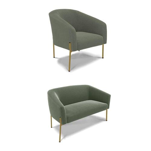 Sofá Namoradeira E Poltrona Pé Ferro Dourado Stella Bouclê D03 - D'rossi Cor Menta