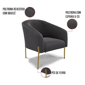 Tem novidades chegando por aqui! Olha só essa nossa inédita Namoradeira e Poltrona Stella Bouclê. Sim, as melhores opções em Namoradeira estão aqui! A Namoradeira e Poltrona Stella Bouclê é para todas as ocasiões, é ideal para você relaxar, assistir tv ou ler um livro, mantendo-o confortável ao longo do dia! Um estofado versátil, que foge do convencional pelo seu design e tecido luxuoso. Seu formato curvo, marcante e sofisticado, oferece conforto de forma excepcional, com aquela sensação de abraço, que deixa o coração quentinho! Desenvolvida com atenção aos detalhes, para atender todas suas expectativas e necessidades. Seu aspecto arredondado e anatômico, possibilita que a postura fique sempre alinhada, mantendo a coluna na posição correta. Ela dispõe de um acabamento impecável, revestida em Bouclê em tom Grafite, um tecido maleável que além de ser muito bonito, é a grande tendência do momento, por ser uma lã mais refinada, quente, com toque suave e agradável, semelhante à textura natural da ovelha. Contém uma estrutura robusta, sua sustentação é dada pelos Pés de Ferro no tom Dourado, que garantem mais segurança e firmeza ao sentar-se. Já o enchimento é feito em espuma D-23 no encosto e assento, garantindo maior conforto ao usuário. Ah! Vale a pena lembrar que a Namoradeira e Poltrona Stella Bouclê, foi produzida em quantidades limitadas, para aqueles que procuram criar um visual diferenciado e exclusivo. Então, não deixe de aproveitar esse lançamento, hem! Leve a sua agora mesmo.