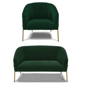 Sofá Namoradeira e Poltrona Pé Ferro Dourado Stella Bouclê Verde D03 - D`Rossi