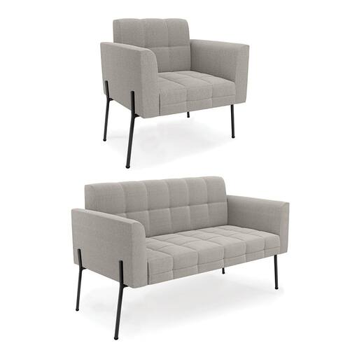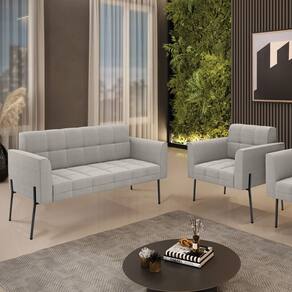 Sofá Namoradeira e Poltrona Pé Ferro Pto Elisa Bouclê Cinza D03 - D`Rossi