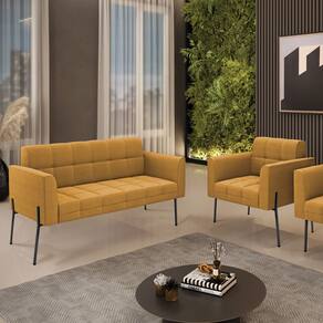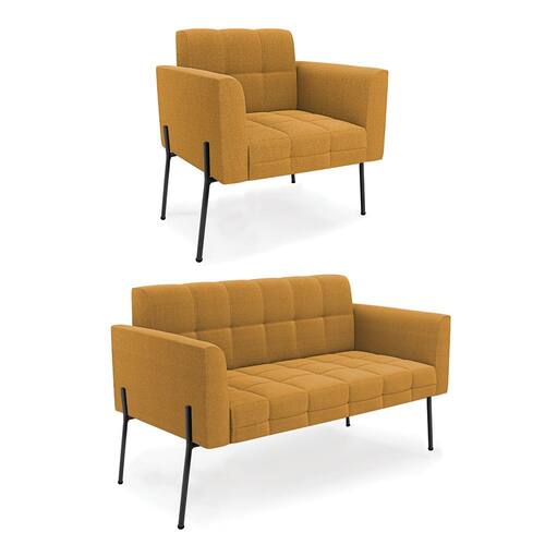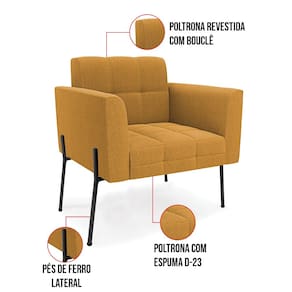 O Sofá Namoradeira e Poltrona Elisa é uma mobília que combina elegância, conforto e durabilidade. Ele tem um design retrô e sofisticado, com Pés Laterais de Ferro Preto e revestimento em tecido Bouclê Mostarda, que harmonizam com qualquer ambiente. Ele é ideal para sala de estar, recepções, escritórios, cozinhas ou qualquer outro espaço que você queira decorar com estilo e bom gosto. Ele tem uma estrutura em madeira de reflorestamento eucalipto, que garante a resistência e a sustentabilidade do produto. Ele suporta até 180 kg de peso, podendo ser utilizada por pessoas de diferentes biotipos. Ele tem um acabamento reforçado e espuma de qualidade D23, que oferece maciez e aconchego. Ele contém detalhes de costura no encosto e assento, resultando em um acabamento impecável, conferindo muito mais valor e elegância ao produto. O Sofá Namoradeira e Poltrona Elisa é um móvel de alta qualidade, beleza e funcionalidade. Ele é fácil de transportar, pois tem um peso leve e um tamanho compacto. O Sofá Namoradeira e Poltrona Elisa é um produto que vai fazer a diferença na sua decoração e no seu bem-estar. Ele vai trazer charme, conforto e durabilidade para o seu ambiente. Aproveite essa oferta e leve para casa um Sofá Namoradeira e Poltrona de qualidade por um preço incrível. Essa é a sua chance de ter um Sofá Namoradeira e Poltrona maravilhoso por um preço imperdível. Corra e garanta o seu antes que acabe o estoque!