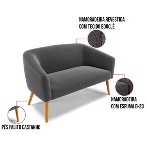 Tem novidades chegando por aqui! Olha só o nosso inédito Kit 01 Namoradeira 02 Lugares e 01 Poltrona Stella Bouclê. Sim, os melhores kits estão aqui! O kit Stella Bouclê é para todas as ocasiões, é ideal para você relaxar, assistir tv ou ler um livro, mantendo-o confortável ao longo do dia! Um conjunto versátil, que foge do convencional pelo seu design e tecido luxuoso. Seu formato curvo, marcante e sofisticado, oferece conforto de forma excepcional, com aquela sensação de abraço, que deixa o coração quentinho! Desenvolvido com atenção aos detalhes, para atender todas suas expectativas e necessidades. Seu aspecto arredondado e anatômico, possibilita que a postura fique sempre alinhada, mantendo a coluna na posição correta. Ele dispõe de um acabamento impecável, revestido em Bouclê em tom Grafite, um tecido um tecido maleável que além de ser muito bonito, é a grande tendência do momento, por ser uma lã mais refinada, quente, com toque suave e agradável, semelhante à textura Castanho da ovelha. Contém uma estrutura robusta, sua sustentação é dada pelos pés palito Castanho, que garantem mais segurança e firmeza ao sentar-se. Já o enchimento é feito em espuma D-23 no encosto e assento, garantindo maior conforto ao usuário. Ah! Vale a pena lembrar que o Kit Stella Bouclê, foi produzido em quantidades limitadas, para aqueles que procuram criar um visual diferenciado e exclusivo. Então, não deixe de aproveitar esse lançamento, hem! Leve seu kit agora mesmo. Dimensões da Poltrona Altura total: 81 cm Largura total: 69 cm Profundidade total: 60 cm Altura do encosto: 40 cm Largura do assento: 45 cm Profundidade do assento: 45 cm Altura do chão ao assento: 45 cm Espessura do assento: 15 cm Tamanho dos pés: 30 cm Altura do chão ao braço: 70 cm Altura interna do braço: 28 cm Espessura do braço: 12 cm Peso: 20 kg Dimensões da Namoradeira Altura total: 80 cm Largura total: 120 cm Profundidade total: 63 cm Altura do encosto: 39 cm Largura do assento: 100 cm Profundidade do assento: 45 cm Altura do chão ao assento: 45 cm Espessura do assento: 15 cm Altura do chão ao braço: 70 cm Altura interna do braço: 25 cm Tamanho dos pés: 30 cm Espessura do braço: 13 cm Peso: 21 kg Especificações do Produto Estrutura: Madeira Eucalipto Espuma: D-23 Tecido: Bouclê Tipo de pés: Pés Palito Castanho Peso suportado: Até 120 Kg Garantia: 90 dias contra defeito de fabricação Montagem: O produto vai montado, apenas parafusar a base Instruções de limpeza: Utilizar um pano limpo e levemente úmido Você irá receber: 01 Sofá Namoradeira e 01 Poltrona - Entregue em: 02 Volumes Observações Relevantes - Todos os produtos vão embalados com total segurança; - As cores dos produtos podem sofrer alterações dependendo do seu monitor; - Para futuras compras, não garantimos a mesma tonalidade de cor, pois existe variação a cada lote do fabricante do tecido; - As imagens são meramente ilustrativas, não acompanham objetos de decoração e eletros; - Confira as dimensões do produto no momento da compra e certifique-se de que passará normalmente por escadas, elevadores, portas e corredores; - Importante: Por se tratar de estofado as medidas podem ter uma pequena variação em até 3 cm; - Não nos responsabilizamos no ato da por montagens, desmontagens, instalações de produtos; - Não nos responsabilizamos no ato da por subir escadas, elevadores, nem utilização de guinchos ou equipamentos similares para acesso a pisos superiores em apartamentos; - A do produto é realizada em todo território nacional, até onde as rodovias alcançam, s fluviais ou aéreas devem ser cotadas a parte; - Observando as orientações acima, evita-se futuros desagrados ou imprevistos com a do produto. Havendo despesas adicionais, serão de responsabilidade do cliente;