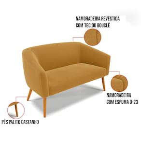 Tem novidades chegando por aqui! Olha só essa nossa inédita Namoradeira e Poltrona Stella Bouclê. Sim, as melhores opções em Namoradeira estão aqui! A Namoradeira e Poltrona Stella Bouclê é para todas as ocasiões, é ideal para você relaxar, assistir tv ou ler um livro, mantendo-o confortável ao longo do dia! Um estofado versátil, que foge do convencional pelo seu design e tecido luxuoso. Seu formato curvo, marcante e sofisticado, oferece conforto de forma excepcional, com aquela sensação de abraço, que deixa o coração quentinho! Desenvolvida com atenção aos detalhes, para atender todas suas expectativas e necessidades. Seu aspecto arredondado e anatômico, possibilita que a postura fique sempre alinhada, mantendo a coluna na posição correta. Ela dispõe de um acabamento impecável, revestida em Bouclê em tom Mostarda, um tecido maleável que além de ser muito bonito, é a grande tendência do momento, por ser uma lã mais refinada, quente, com toque suave e agradável, semelhante à textura natural da ovelha. Contém uma estrutura robusta, sua sustentação é dada pelos Pés Palito no tom Castanho, que garantem mais segurança e firmeza ao sentar-se. Já o enchimento é feito em espuma D-23 no encosto e assento, garantindo maior conforto ao usuário. Ah! Vale a pena lembrar que a Namoradeira e Poltrona Stella Bouclê, foi produzida em quantidades limitadas, para aqueles que procuram criar um visual diferenciado e exclusivo. Então, não deixe de aproveitar esse lançamento, hem! Leve a sua agora mesmo.