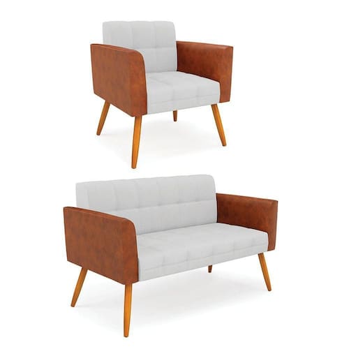 Você irá receber: 01 Sofá Namoradeira e 01 Poltrona - Entregue em: 02 Volumes