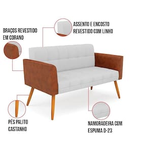 Você gosta de colecionar vários momentos memoráveis com sua família e amigos? Que tal recebê-los, com móveis de altíssima qualidade que só a D'Rossi tem? O Sofá Sofá Namoradeira e Poltrona Elisa é adequado para você! Seu design retrô é a grande tendência do momento. Pode ser utilizado em diversos espaços da casa, em salas, hall de entrada, quartos, cozinhas, varanda, sacada, escritório, dentre outros. Contém as seguintes características: A estrutura é feita de madeira de Eucalipto 100% de reflorestamento, e a Pés Palito Castanho, além de ser resistente e durável, suporta em média até 120 kg. Assento, encosto e braços, contém enchimento de espuma D-23 e é estofada em tecido Corano Nozes com Linho, no tom Cinza, que oferece muito conforto e resistência ao sentar, com aquela sensação de maciez e aconchego. Possui também, detalhes de costura no encosto e assento, resultando em um acabamento impecável, conferindo muito mais valor e elegância ao seu espaço. Para complementar a decoração com esse lindo Kit Sofá Namoradeira e Poltrona Elisa, a dica é utilizar mantas, almofadas ou vasinho de flor. E pronto, seu cantinho estará perfeito para descansar e relaxar! Aqui, você encontra várias opções, para que seus amigos e familiares se sintam acolhidos. Garanta já seu Kit Sofá Namoradeira e Poltrona Elisa.