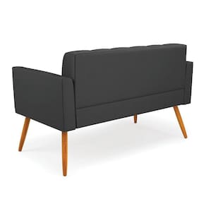 Você gosta de colecionar vários momentos memoráveis com sua família e amigos? Que tal recebê-los, com móveis de altíssima qualidade que só a DRossi tem? A Namoradeira 2 Lugares Elisa é adequada para você! Seu design retrô é a grande tendência do momento. Pode ser usada em diversos espaços da casa, em salas, hall de entrada, quartos, cozinhas, varanda, sacada, escritório, dentre outros. Contém as seguintes características: A estrutura é feita de madeira de Eucalipto 100% de reflorestamento, e os Pés Palito Castanho, além de serem resistentes e duráveis, suportam em média até 120 kg. Assento, encosto e braços, contém enchimento de espuma D-23 e é estofada em tecido Corino, no tom Preto, que oferece muito conforto e resistência ao sentar, com aquela sensação de maciez e aconchego. Possui também, detalhes de costura no encosto e assento, resultando em um acabamento impecável, conferindo muito mais valor e elegância ao seu espaço. Para complementar a decoração com essa linda namoradeira, a dica é utilizar mantas, almofadas ou vasinho de flor. E pronto, seu cantinho estará perfeito para descansar e relaxar! Aqui, você encontra várias opções, para que seus amigos e familiares se sintam acolhidos. Garanta já sua Namoradeira Elisa.