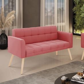 Sofá Namoradeira Elisa Suede Pés Palito Natural - D'rossi Cor Rose