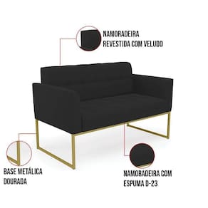 Você gosta de colecionar vários momentos memoráveis com sua família e amigos? Que tal recebê-los, com móveis de altíssima qualidade que só a DRossi tem? A Namoradeira 2 Lugares Elisa é adequada para você! Seu design retrô é a grande tendência do momento. Pode ser usada em diversos espaços da casa, em salas, hall de entrada, quartos, cozinhas, varanda, sacada, escritório, dentre outros. Contém as seguintes características: A estrutura é feita de madeira de Eucalipto 100% de reflorestamento, e a Base Metálica Industrial Dourado, além de ser resistente e durável, suporta em média até 120 kg. Assento, encosto e braços, contém enchimento de espuma D-23 e é estofada em tecido Veludo, que oferece muito conforto e resistência ao sentar, com aquela sensação de maciez e aconchego. Possui também, detalhes de costura no encosto e assento, resultando em um acabamento impecável, conferindo muito mais valor e elegância ao seu espaço. Para complementar a decoração com essa linda namoradeira, a dica é utilizar mantas, almofadas ou vasinho de flor. E pronto, seu cantinho estará perfeito para descansar e relaxar! Aqui, você encontra várias opções, para que seus amigos e familiares se sintam acolhidos. Garanta já sua Namoradeira Elisa.