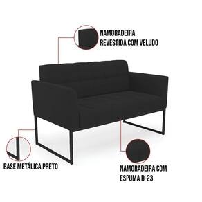 Sofá Namoradeira Elisa Veludo Base Metálica Industrial Preto - D'rossi Cor Preto