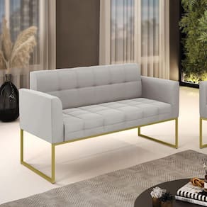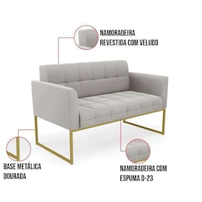 Você gosta de colecionar vários momentos memoráveis com sua família e amigos? Que tal recebê-los, com móveis de altíssima qualidade que só a DRossi tem? A Namoradeira 2 Lugares Elisa é adequada para você! Seu design retrô é a grande tendência do momento. Pode ser usada em diversos espaços da casa, em salas, hall de entrada, quartos, cozinhas, varanda, sacada, escritório, dentre outros. Contém as seguintes características: A estrutura é feita de madeira de Eucalipto 100% de reflorestamento, e a Base Metálica Industrial Dourado, além de ser resistente e durável, suporta em média até 120 kg. Assento, encosto e braços, contém enchimento de espuma D-23 e é estofada em tecido Veludo, no tom Cinza, que oferece muito conforto e resistência ao sentar, com aquela sensação de maciez e aconchego. Possui também, detalhes de costura no encosto e assento, resultando em um acabamento impecável, conferindo muito mais valor e elegância ao seu espaço. Para complementar a decoração com essa linda namoradeira, a dica é utilizar mantas, almofadas ou vasinho de flor. E pronto, seu cantinho estará perfeito para descansar e relaxar! Aqui, você encontra várias opções, para que seus amigos e familiares se sintam acolhidos. Garanta já sua Namoradeira Elisa.