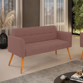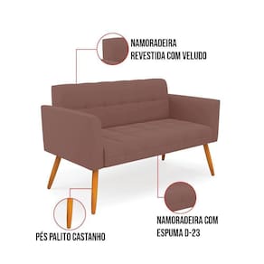 Sofá Namoradeira Elisa Veludo Pés Palito Castanho - D'rossi Cor Rose
