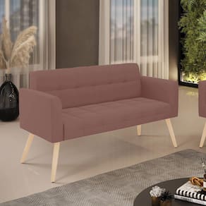Você gosta de colecionar vários momentos memoráveis com sua família e amigos? Que tal recebê-los, com móveis de altíssima qualidade que só a DRossi tem? A Namoradeira 2 Lugares Elisa é adequada para você! Seu design retrô é a grande tendência do momento. Pode ser usada em diversos espaços da casa, em salas, hall de entrada, quartos, cozinhas, varanda, sacada, escritório, dentre outros. Contém as seguintes características: A estrutura é feita de madeira de Eucalipto 100% de reflorestamento, e os Pés Palito Natural, além de serem resistentes e duráveis, suportam em média até 120 kg. Assento, encosto e braços, contém enchimento de espuma D-23 e é estofada em tecido Veludo, no tom Rosê, que oferece muito conforto e resistência ao sentar, com aquela sensação de maciez e aconchego. Possui também, detalhes de costura no encosto e assento, resultando em um acabamento impecável, conferindo muito mais valor e elegância ao seu espaço. Para complementar a decoração com essa linda namoradeira, a dica é utilizar mantas, almofadas ou vasinho de flor. E pronto, seu cantinho estará perfeito para descansar e relaxar! Aqui, você encontra várias opções, para que seus amigos e familiares se sintam acolhidos. Garanta já sua Namoradeira Elisa.