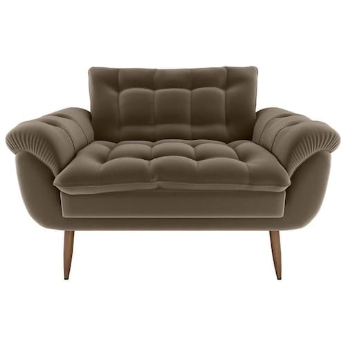 Os pés em madeira maciça de 25 cm elevam o design, facilitam a limpeza e completam o visual sofisticado. Além disso, o modelo dispensa montagem, chegando pronto para uso.