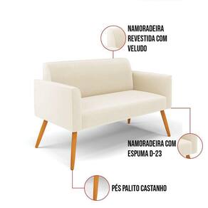 Todo mundo gosta de um ambiente bem decorado, e se for novidade melhor ainda não é mesmo? A DRossi, além de entregar beleza, qualidade e confiança aos clientes, ela dispõe das melhores opções em produtos, disponíveis no mercado! Se você quer um produto sofisticado, opte pelo Sofá Namoradeira Marisa. Ele dispõe de um tom lindo, uma cor leve, neutra e delicada que combina com qualquer estilo de decoração. Esta mobília fica perfeita na sala, escritório, quarto, varanda coberta e onde mais preferir! Sua estrutura é feita em madeira reforçada de eucalipto proveniente de reflorestamento. No assento/encosto contém um revestimento no tecido Veludo, com estofamento em espuma prorelax D-23, garantindo maior conforto ao usuário. A sustentação da peça é dada pelos Pés Palito Castanho, garantindo uma resistência melhor, para relaxar o dia todo com mais comodidade. O Sofá Namoradeira Marisa é ideal, para dar aquele realce que seu ambiente precisa. Tenho certeza que, esse móvel é a melhor compra que você irá fazer. Garanta já seu Sofá Namoradeira e se acomode da melhor maneira possível!
