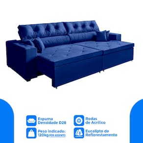 Sofá New Austin 2,02 m Retrátil com Molas Azul