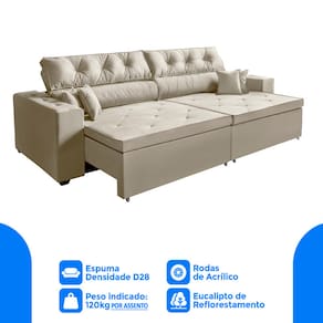 - Encosto fixo, almofadas fixas compostas de 100% fibra siliconada e para maior conforto.