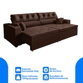 Sofá New Austin 2,02 m Retrátil com Molas Café - Marrom