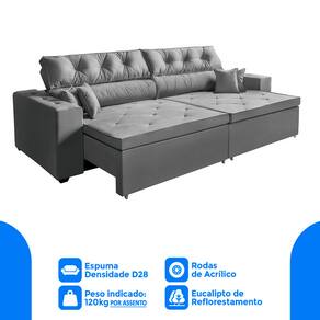 Sofá New Austin 2,02 m Retrátil com Molas Cinza