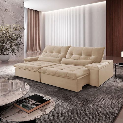 Assento: Assento Retratil com Percinta elastica, molas espirais, espuma D-28, pillow de 17 cm, molas ensacadas e matelasse.
