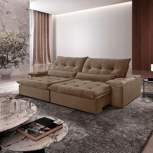 Design diferenciado, qualidade impecavel. A sua sala de estar so esta completa na presenca de um bom sofa e nada mais gostoso do que receber a familia ou curtir os seus momentos de descanso junto com nosso modelo Nivus! Pensado para quem quer aliar bom gosto uma estrutura reforcada para o uso diario, a peca tem madeira na composicao e revestimento de toque agradavel para garantir a qualidade que voce merece.