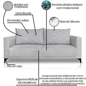 Modelo:Sofa Nori 2 Lugares Pes De Ferro 180cm Linho Boucle