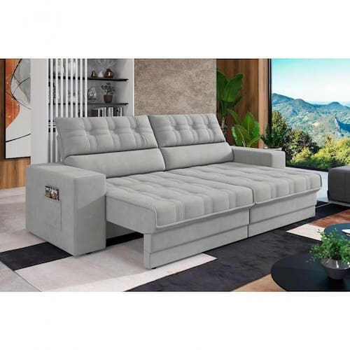 Design Que Enche os Olhos: Além do conforto, este sofá é um verdadeiro destaque estético. Seu design charmoso, disponível em , transforma sua sala em um ambiente elegante e luxuoso. Ele eleva a decoração da sua casa para um patamar.