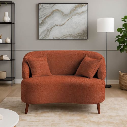 Sofá Orgânico Curvo 2 Lugares Feijão Bouclé TerraCota - Laranja