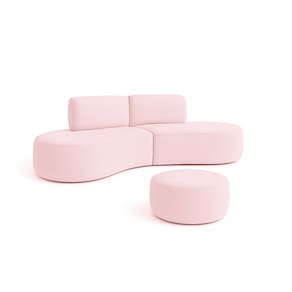 Sofá Orgânico e Puff Módulo Curvo Savana Boucle Rosê - Montanari`s Decor