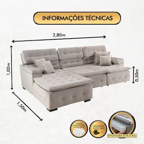 Sofá Orlando Retrátil, Reclinável e Chaise 2.80x1,50m – Sofisticato