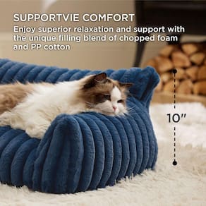 Bedsure Sofá de gato fofo para animais de estimação - Sofá fofo para cães pequenos com lã de veludo cotelê macio premium, sofá para animais de estimação com capa lavável removível, sofá-cama de suporte para cães pequenos e médios, 76 cm, azul noturno - Suporte superior: o design de três lados deste sofá para animais de estimação oferece suporte ideal para cabeça e pescoço para seu amigo peludo, garantindo o máximo de conforto. O encosto alto atende a animais de estimação com maior necessidade de travesseiro, o que o torna perfeito para uma variedade de raças de cães e gatos. - Conforto equilibrado: este sofá para animais de estimação apresenta uma mistura exclusiva 2: 1 de espuma picada e enchimento de fibra de poliéster, oferecendo um excelente equilíbrio de suporte e conforto adequado para animais de estimação de todos os tamanhos, garantindo cochilos reparadores e aconchegantes. - Calor aconchegante: feito com material de pele sintética de coelho super macio, este sofá para animais de estimação é quente e confortável, perfeito para o outono e inverno. Seu animal de estimação vai adorar se aconchegar nesta cama aconchegante e luxuosa, ideal para todas as estações. - Segurança antiderrapante: projetado com um fundo antiderrapante, este sofá para animais de estimação garante a segurança e a estabilidade do seu animal de estimação, evitando movimentos indesejados e proporcionando um espaço de descanso seguro para o seu companheiro peludo. - Fácil manutenção: o sofá para animais de estimação Bedsure vem com uma capa fácil de remover, facilitando a limpeza profunda. Basta lavar e secar na máquina para manter a cama fresca e higiênica para o seu animal de estimação.