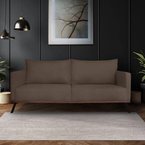 Madeira de reflorestamento, espuma, fibra siliconada, tecido veludo e pés de ferro.Vendido e entregue por MadeiraMadeira