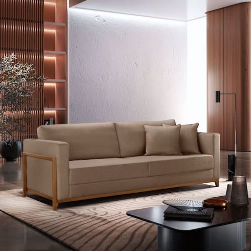 O Sofá Paris é a escolha ideal para quem deseja unir elegância e conforto em seu ambiente. Com capacidade para três pessoas, ele oferece amplo espaço para relaxar, seja na sala de estar ou no home theater. Sua base em madeira, com acabamento refinado, adiciona um toque de sofisticação e resistência, enquanto o design clean e moderno se adapta facilmente a diferentes estilos de decoração.