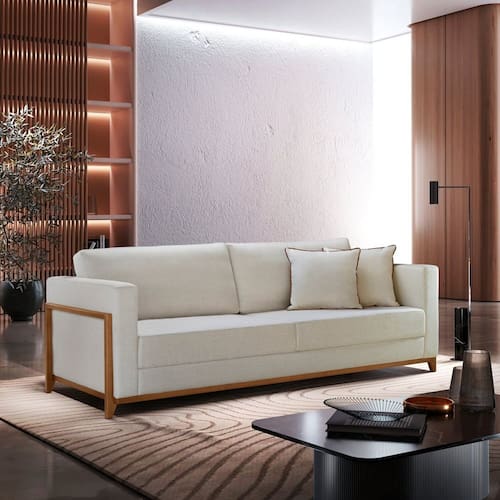 O Sofá Paris é a combinação perfeita entre elegância clássica e conforto moderno. Com um design sofisticado, este sofá destaca-se pelo belo detalhe de madeira esculpida ao longo do braço, que adiciona um toque de requinte e charme atemporal. O estofamento luxuoso oferece uma sensação de aconchego, enquanto as almofadas decorativas complementam o visual com padrões e texturas refinadas, trazendo um ar de opulência e personalidade ao ambiente. Ideal para salas de estar que buscam um toque de classe e sofisticação, o Sofá Paris não só embeleza o espaço, mas também garante um conforto excepcional para momentos de relaxamento e entretenimento.. Produto Montado: Sim Acompanha Almofadas extras: 02 Almofada do assento: Fixa Almofada do encosto: Removível Altura do assento até o chão: 42.0000 Altura do Encosto: 48 cm Altura dos Pés: 13 cm Ambiente Principal: Sala de Estar codigo_ean: 7909903921388 Complexidade da Montagem: Baixa: pode ser montado por uma pessoa sozinha Cor do Produto: Bege Densidade do Assento: D-28 Enchimento do Assento: Fibra Siliconada Firmeza do Assento: Médio Itens Inclusos: sofá, pés em madeira, 2 almofadas decorativas Material dos Pés: Eucalipto Necessita Montagem: Sim Nível de Conforto: Firme Confortável Peso: 70 kg Pet Friendly: Não Possui Percintas Elásticas: Sim Possui Pés: 04 Possui Rodízio: Não Quantidade de Itens: 1 Recomendações de Uso, Manutenção e Limpeza: higienizar com um pano limpo Sistema de Montagem: parafusos Suporta Até (kg): 100 kg Tecido Predominante: Linho Tipo de Encosto: Fixo Tipo de Mola: Molas Bonnel Marca: Encantare