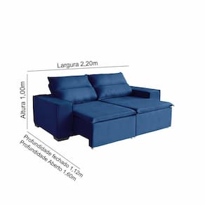 Sofá Paris 4 Lugares 2,20cm Retrátil E Reclinável - De Casa Décor E Estofados Azul
