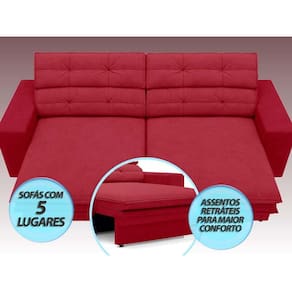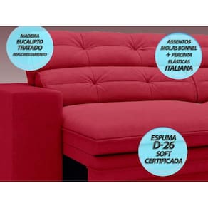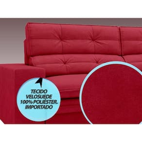 Sofá Pegasus 2,50m Assento Retrátil e Reclinável Velosuede - NETSOFAS - Vermelho