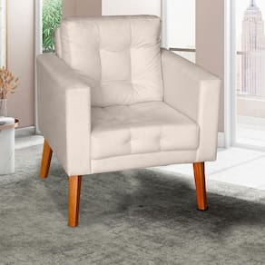 Sofá Poltrona Cadeira Decorativa Glamour Dubai com pés em Madeira Bege - Sofá Poltrona Cadeira Decorativa Glamour Dubai com pés em Madeira