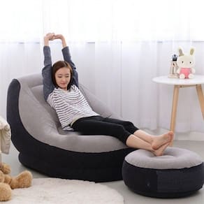 Características:Cor: CinzaÁrea de Contato: Material aveludado para maior confortoPeso Total: 3,4 kgPeso do Produto na Caixa: 3,4 kgMaterial: Vinil resistente e fácil de limparDesign: Criativo e inovador, combinando estilo e confortoVálvulas de Segurança: Para garantir a segurança e durabilidade do produtoMedidas da Poltrona: 1,16 cm X 98 cm X 83 cmMedidas do Puff: 62 cm X 31 cm