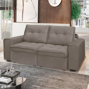 Espuma, madeira, tecido, mola helicoidal, fibra e flocos.O assento retrátil possui preenchimento com espuma Soft D23, garantindo um toque macio e apoio firme. Já o encosto reclinável fixo combina espuma D13 com fibras e flocos (50%), oferecendo maior conforto para as costas.