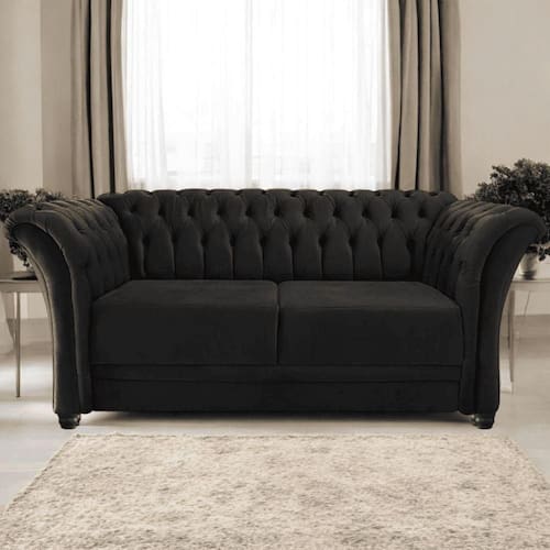 Sofá Recamier Divã Chesterfield 175cm Sofia Linho Preto Capitonê- Mabe Magazine