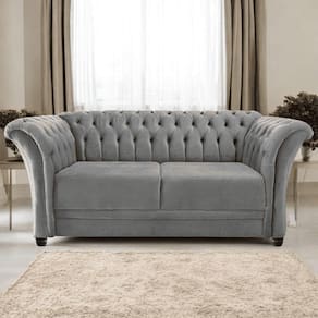Sofá Recamier Divã Chesterfield 185cm Sofia Suede Cinza Capitonê- Mabe Magazine