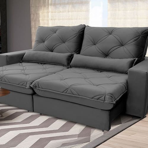 O Estofado Nebraska 2,50 Grafite combina conforto, durabilidade e design sofisticado, sendo a escolha ideal para sua sala de estar. Equipado com percintas italianas, fibras siliconadas e flocos de espuma, oferece um assento macio e acolhedor. Suportando até 120 kg, é robusto e ideal para toda a família. O revestimento grafite adiciona elegância moderna, adaptando-se a diversos estilos de decoração. Invista no coração da sua casa com o Estofado Nebraska e transforme seu espaço de convivência com conforto e beleza incomparáveis. Produto Montado: Sim Acompanha Almofadas extras: Não Almofada do assento: Fixa Almofada do encosto: Fixa Altura do assento até o chão: 0.4700 Altura do Encosto: 107 cm Altura dos Pés: 3 cm Ambiente Principal: Sala de Estar codigo_ean: 7909903689721 Complexidade da Montagem: Baixa: pode ser montado por uma pessoa sozinha Cor: Platinum Grafite Cor do Produto: Platinum Grafite Densidade do Assento: D-28 Enchimento do Assento: Espuma Enchimento do Encosto: Espuma Firmeza do Assento: Firme Itens Inclusos: 1 Sofá Material dos Pés: PVC Necessita Montagem: Sim Peso: 92 kg Pet Friendly: Não Possui Percintas Elásticas: Sim Possui Pés: 08 Possui Rodízio: Sim Profundidade Quando Estendido: 175 Recomendações de Uso, Manutenção e Limpeza: Para remover poeira e sujeira do estofado, utilize um aspirador de pó com o acessório de escova. Em caso de derramamento de líquidos, limpe imediatamente com um pano limpo e seco, evitando esfregar para não espalhar a mancha.Para manchas mais difíceis, utilize um detergente neutro diluído em água morna e aplique suavemente com um pano macio. Em seguida, remova o excesso com um pano úmido e seque completamente.Considere o uso de capas protetoras ou mantas para proteger o estofado contra derramamentos e sujeira, especialmente se tiver animais de estimação ou crianças em casa. Evite expor o estofado à luz solar direta ou fontes de calor excessivo, pois isso pode causar descoloração ou danos ao tecido. Rodízio com Trava: Sim Sistema de Montagem: Manual Suporta Até (kg): 120 kg Tecido Predominante: Veludo Tipo de Encosto: Regulável Tipo de Mola: Molas Ensacadas