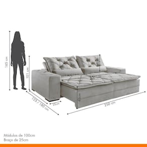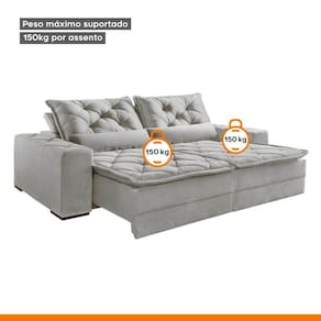 O assento de pillow com espuma elástica D28 certificada, a base do assento com molas espirais e percinta elástica de alta resistência. Possui também mecanismo retrátil em aço que permite abertura do sofá para sua maior comodidade.