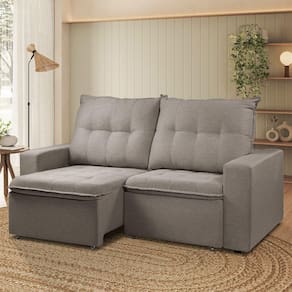 Encosto: Reclinavel com catraca metalica de 5 estagios, permitindo o ajuste ideal para cada momento. Almofadas com enchimento em fibra siliconada, que oferecem toque suave, excelente conforto e mantem o visual sempre alinhado. Bracos: Compostos por espuma D14, os bracos aliam leveza, estrutura e conforto ao design do movel. Pes: Com pes em madeira, o sofa ganha um toque natural e elegante, alem de maior firmeza no apoio.