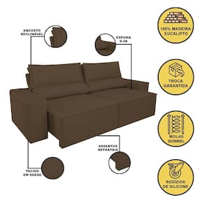 Sofá Reclinável Retrátil 2 Lugares Com Molas Balaqui Decor Marrom