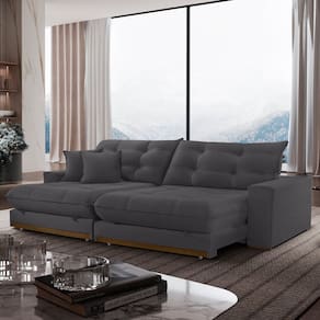 O sofá Belize possui um design moderno, sofisticado e acolhedor que são um convite a desfrutar momentos de alegria e lazer com seus amigos e familiares. Seu assento retrátil e extensível com abetura de 170 cm, pillow de 30 cm, molas ensacadas, espuma D28 e percintas elásticas de excelente qualidade garantem conforto e resistência ao sofá. O encosto são preenchidos com fibra 100% silicone e possuem 7 estágios de recline. A estrutura é fabricada em eucalipto reflorestado, seco e imunizado e os pés em madeira maciça com acabamento em verniz fosco. Além disso, possui possui detalhe na base do aasento em madeira maciça e 02 almofadas decorativas preenchidas com fibra 100% silicone. O sofá Belize é garantia de conforto para sua sala de estar! Produto Montado: Sim Acompanha Almofadas extras: 02 Almofada do assento: Fixa Almofada do encosto: Fixa Altura do assento até o chão: 48.0000 Altura do Encosto: 67 cm Altura dos Pés: 5 cm Ambiente Principal: Sala de Estar Bipartida: Sim codigo_ean: 7900288147578 Complexidade da Montagem: Média: pode ser montado por mais de uma pessoa e/ou necessite de maior conhecimento para montagem Cor: Grafite Cor do Produto: Grafite Enchimento do Assento: Hyper Soft Enchimento do Encosto: Fibra Siliconada Estilo de Braço: Braços Largos Firmeza do Assento: Médio Gramatura do Tecido: 375 g/m² Itens Inclusos: 1 Sofá, 2 Almofadas e Manual de Montagem Largura do Braço: 25 cm Linha ou Coleção: Mundo Manual de Especificação Técnica: https://product-hub-prd.madeiramadeira.com.br/433324338/documents/12e49e65-12d7-4cd2-8b20-757fbb2da8152925224204117471652783811.pdf Manual de Montagem e Instalação: https://product-hub-prd.madeiramadeira.com.br/433324338/documents/b9f23fbc-4464-4daf-af41-5cb66159a2ff2925223204117471652749795.pdf Marca: Le estofados Material da Corrediça do Sofá: Aço/Metal Material dos Pés: Madeira Montagem Flex: Não Necessita Montagem: Sim Nível de Conforto: Firme Origem do Produto: Nacional Peso: 68 kg Peso Suportado por m²: 130 kg/m² Pet Friendly: Não Porta Copos: Não Possui Baú: Não Possui Entrada USB: Não Possui Mola: Sim Possui Percintas Elásticas: Sim Possui Pés: 06 Possui Rodízio: Sim Profundidade Quando Estendido: 170 cm Profundidade quando extendido: 170.0000 Quantidade de Estágios do Encosto: 7 Quantidade de Itens: 1 Quantidade de Molas por Assento: 8 Recomendações de Uso, Manutenção e Limpeza: Utilizar pano úmido Revestimento do Braço: Veludo Rodízio com Trava: Não Sistema de Montagem: Encaixe Suporta Até (kg): 130 kg Tecido Predominante: Veludo Tipo de Encosto: Regulável Tipo de Mola: Molas Ensacadas Tipo de Sofá: Sofá Comum