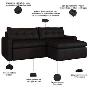 Sofá Retrátil 2 Lugares Para Sala De Estar 184cm Zuno P08 Couro Vinho - Lyam Decor